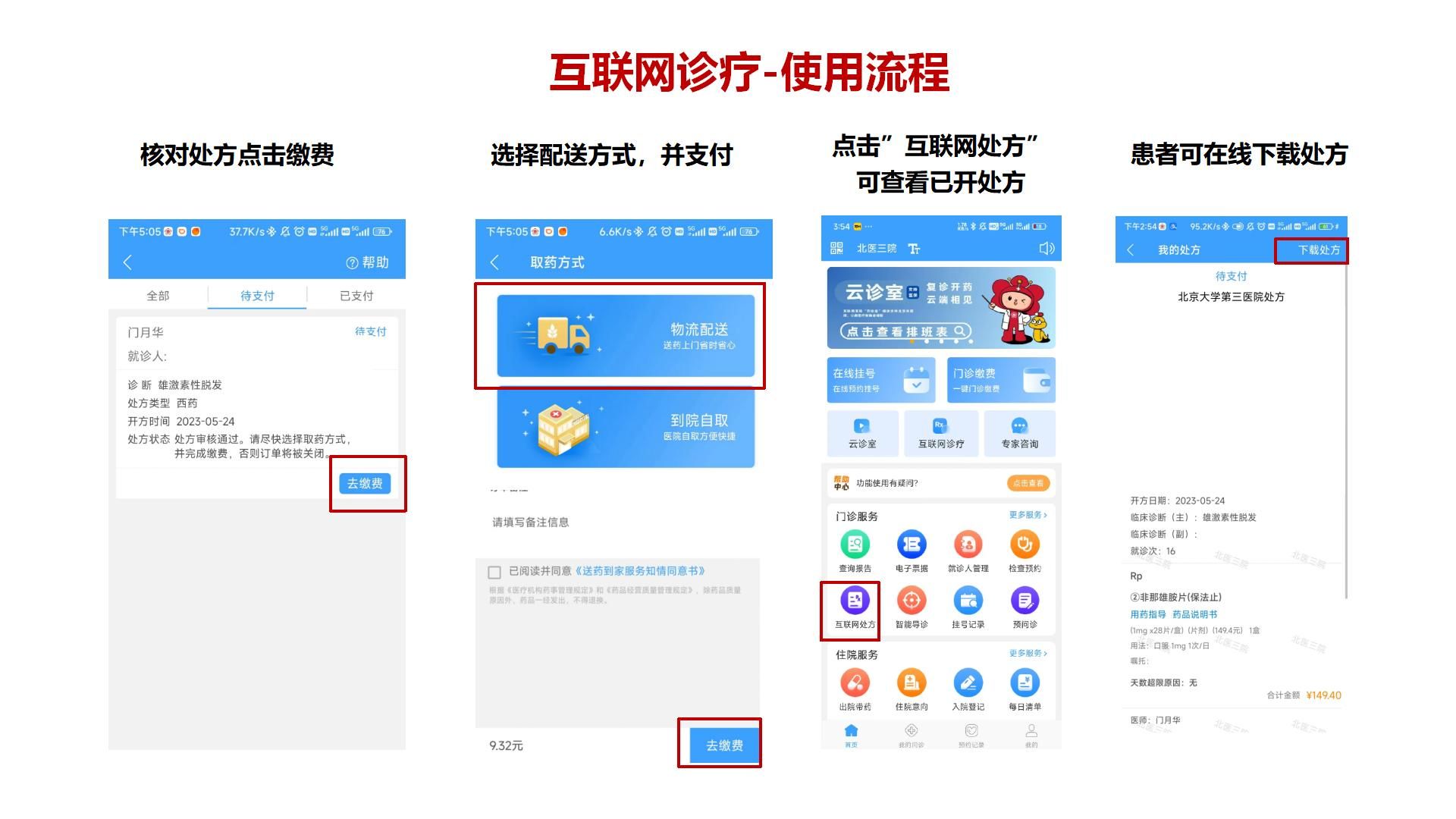 互联网诊疗:适用于复诊患者开药、复查等情况,可由医生开具处方检查和药品,患者线上自费缴费,药品配送到家。