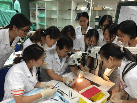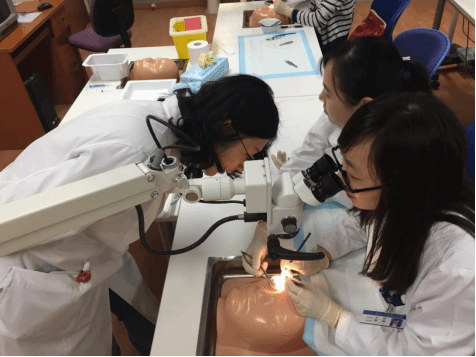 根管治疗中使用牙科手术显微镜 仿头模教室临床前期教学