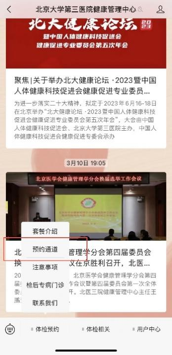 1.通过微信公众号“北京大学第三医院健康管理中心”小程序。