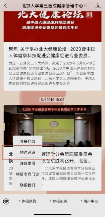 (1)扫码关注“北京大学第三医院健康管理中心微信公众号”