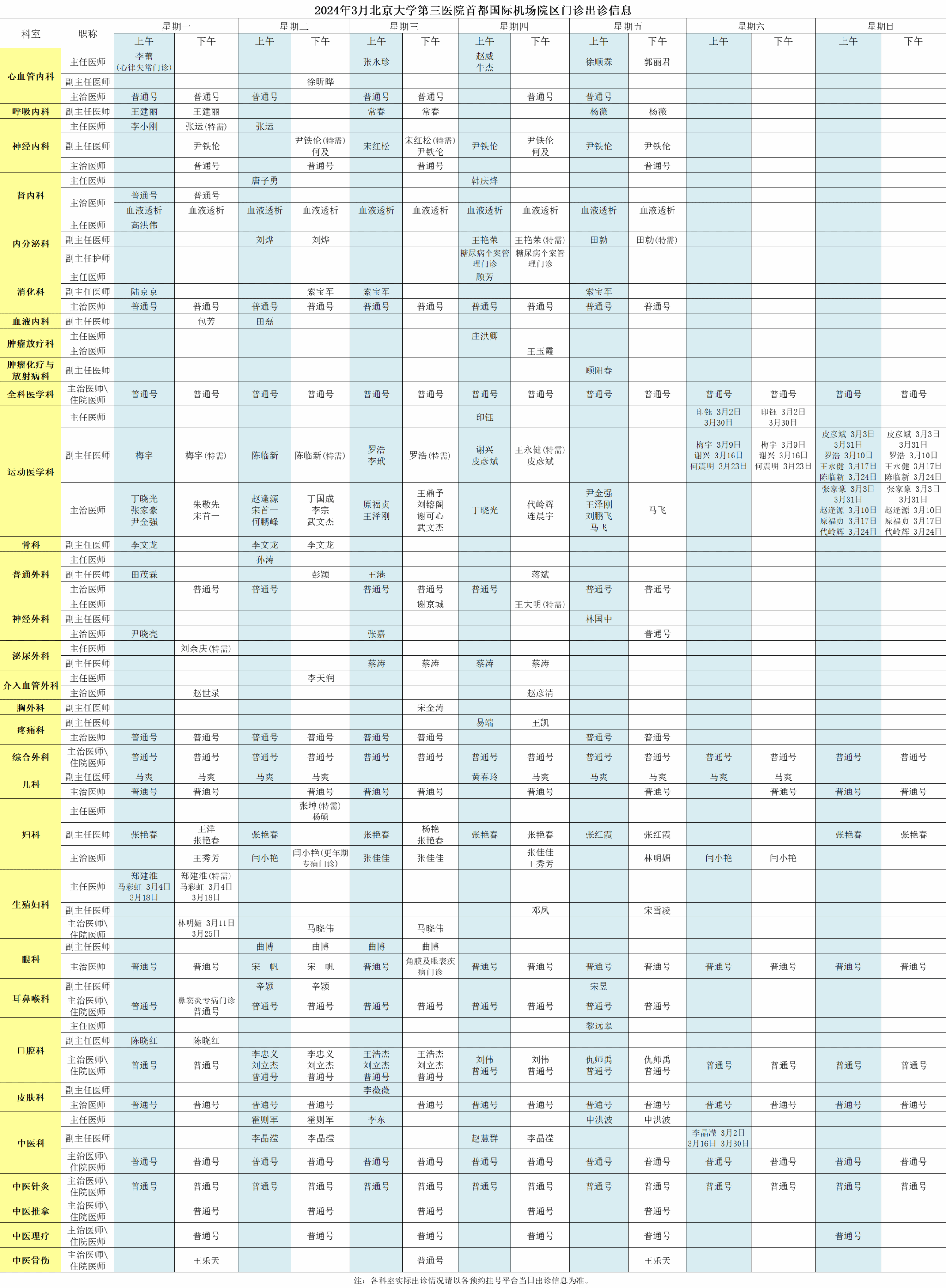 https://www.puh3.net.cn/zhcx/ctzxx.htm,或关注“北医三院服务号”,进入“发消息-导诊-医院首页-出停诊信息-机场院区”查看