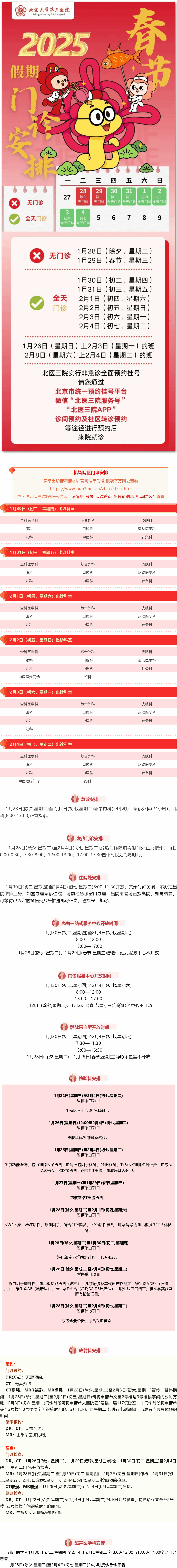 北医三院机场院区2025年春节假期安排
