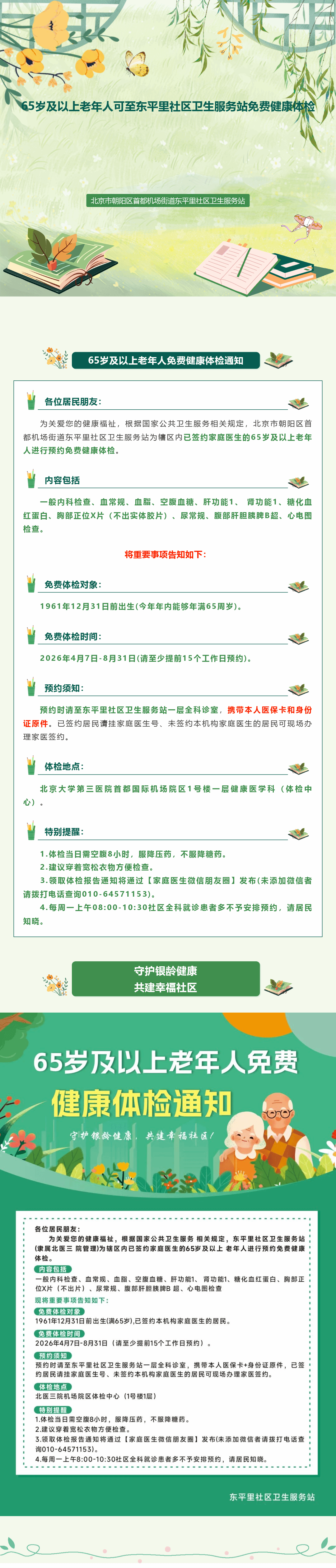 守护银龄健康 共建幸福社区丨65岁及以上老年人可至东平里社区卫生服务站免费健康体检