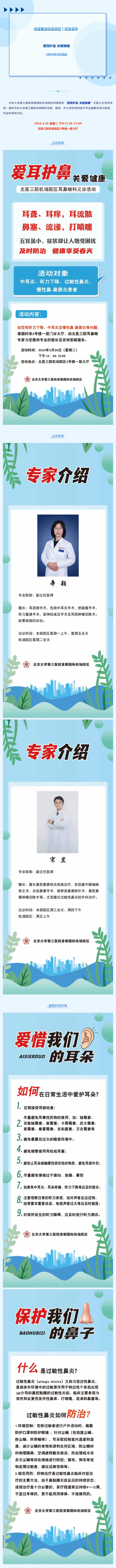 义诊通知丨北医三院机场院区耳鼻喉科义诊活动来啦!