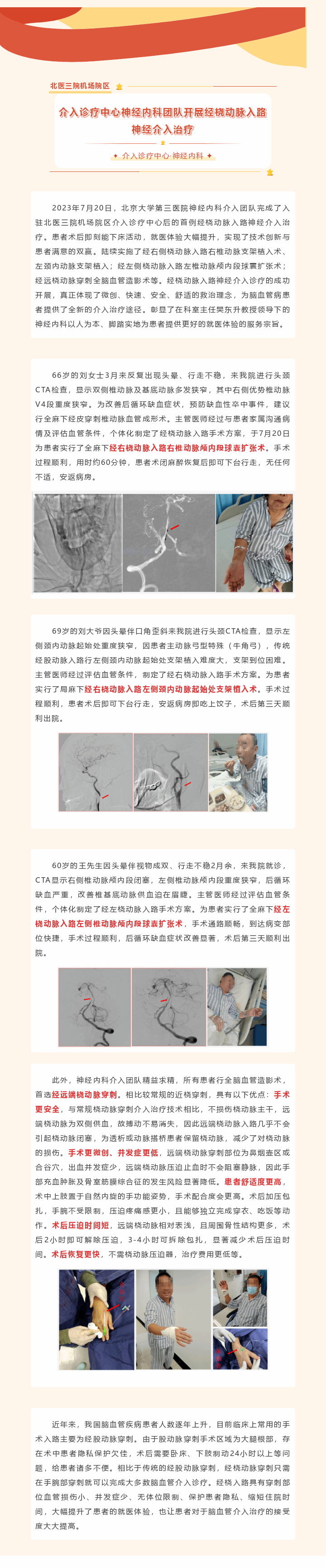 介入诊疗中心丨北医三院机场院区神经内科团队开展经桡动脉入路神经介入治疗