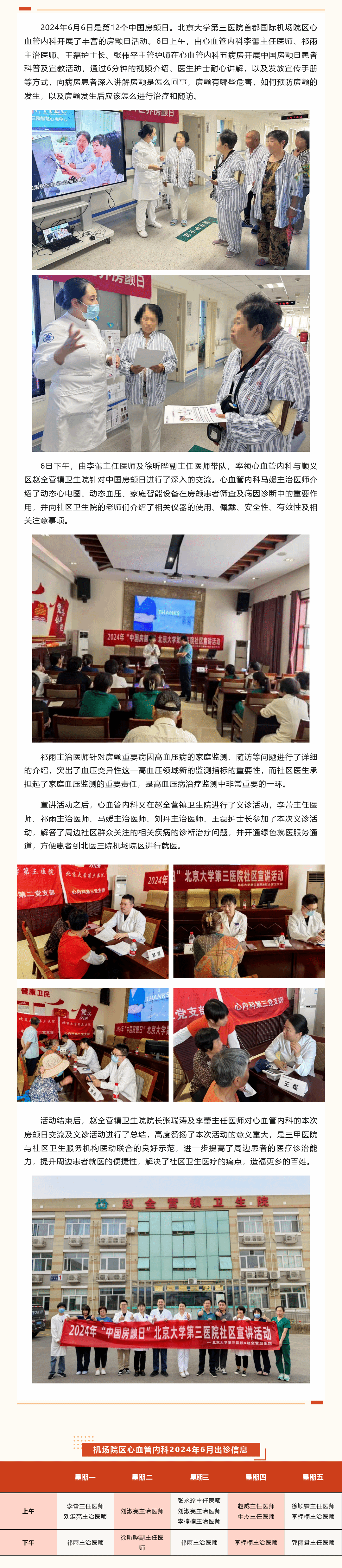 北医三院机场院区心血管内科开展第12个“中国房颤日”活动