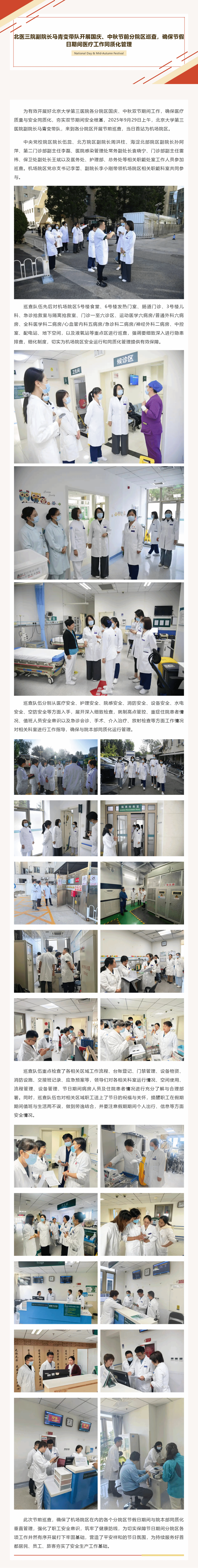 北医三院副院长马青变带队开展国庆、中秋节前分院区巡查,确保节假日期间医疗工作同质化管理