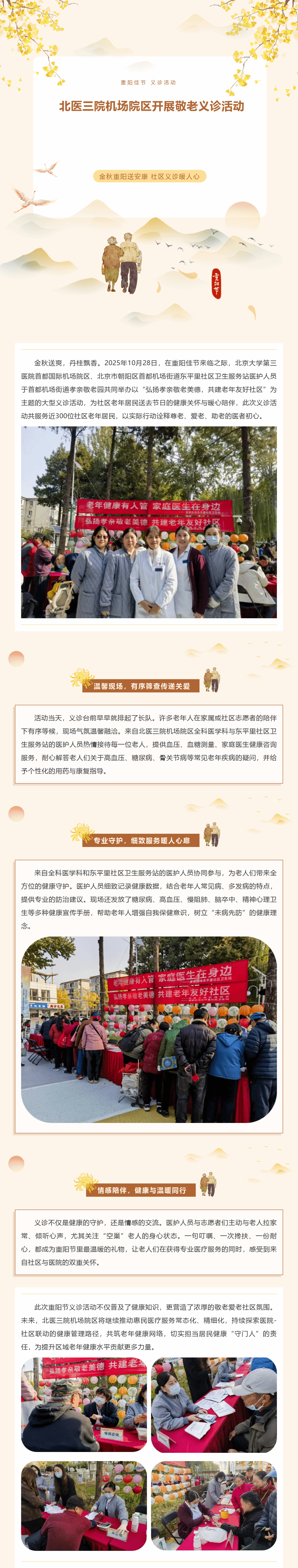 金秋重阳送安康 社区义诊暖人心丨北医三院机场院区开展敬老义诊活动