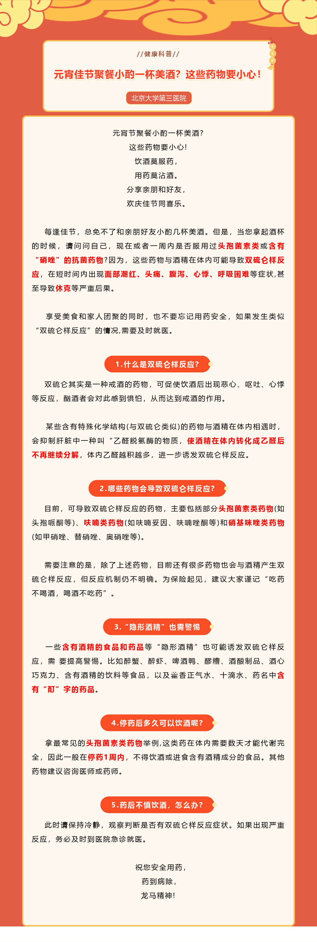 元宵佳节聚餐小酌一杯美酒?这些药物要小心!
