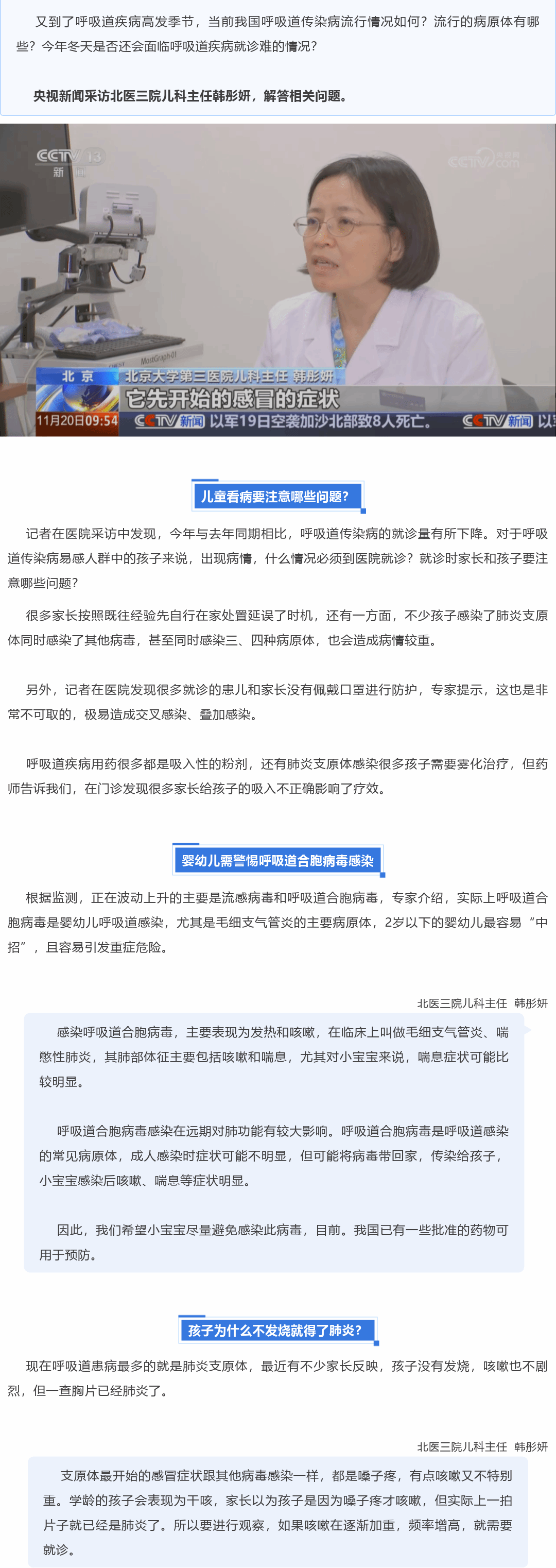 央视新闻:呼吸道疾病发病上升,儿童就诊有哪些注意事项?专家解答→
