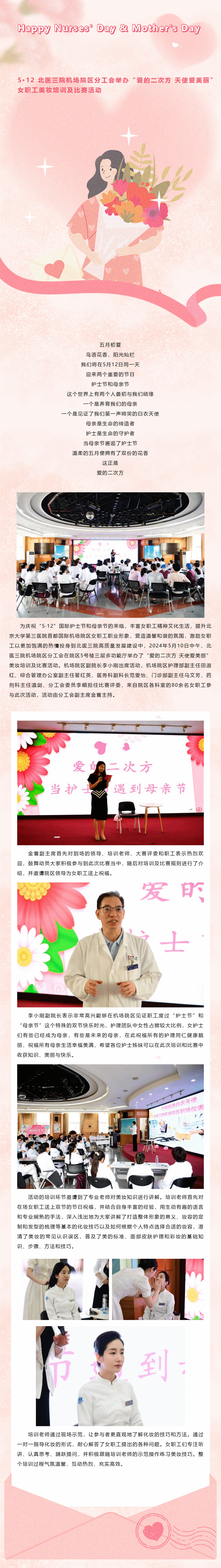 5·12护士节遇见母亲节丨北医三院机场院区分工会举办“爱的二次方 天使爱美丽”女职工美妆培训及比赛活动