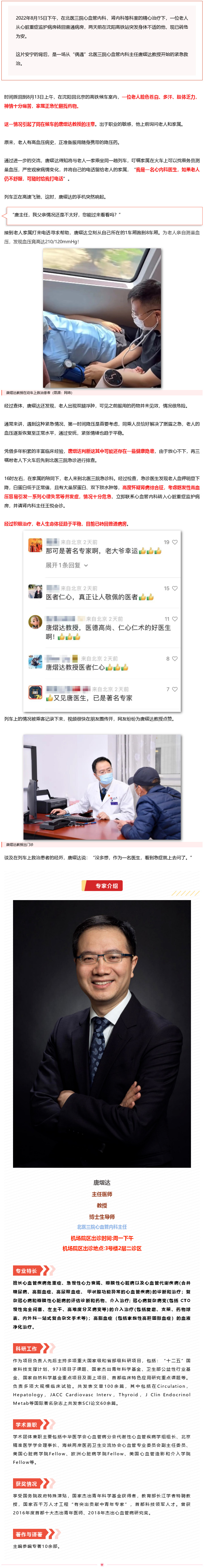 动车乘客突发疾病,北医三院心血管内科主任唐熠达教授紧急救治