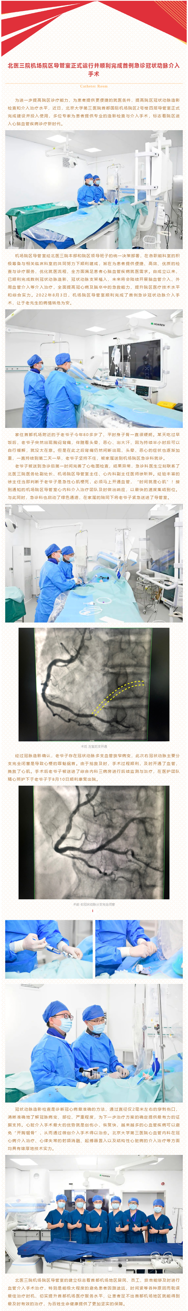 北医三院机场院区导管室正式运行并顺利完成首例急诊冠状动脉介入手术