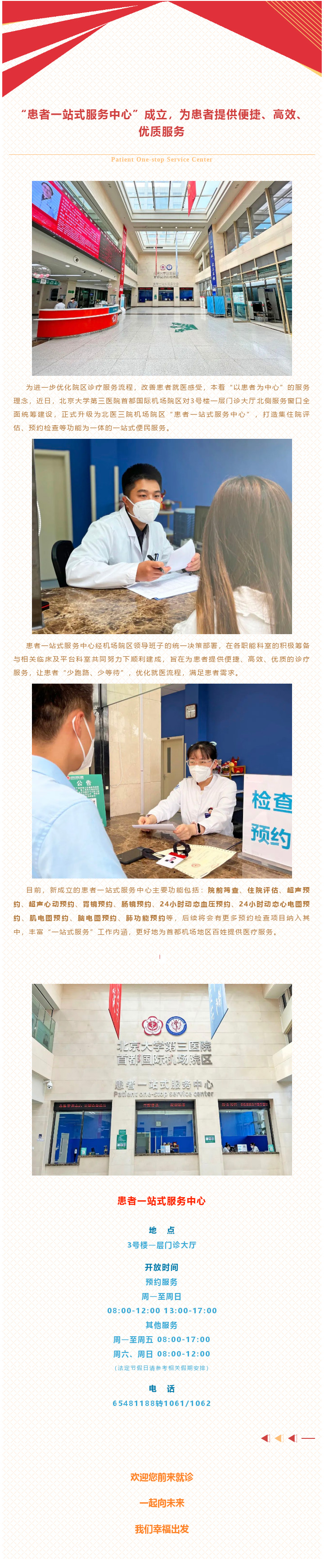 北医三院机场院区“患者一站式服务中心”成立,为患者提供便捷、高效、优质服务