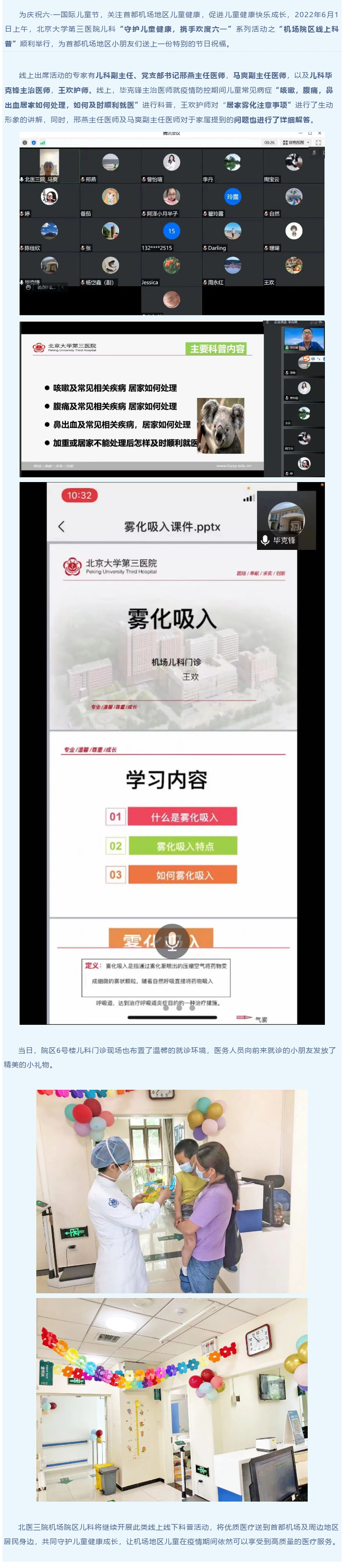 北医三院机场院区儿科开展“守护儿童健康,携手欢度六一”线上科普活动