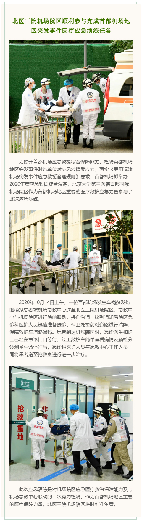 2020年6月20日,北医三院机场院区急诊科病房正式启动,有序运行一月来,有效缓解了机场院区急诊抢救室床位周转不足及机场空勤人员与周边地区患者住院困难的问题,为抢救更多危重症患者创造了条件,同时有助于充分发挥...