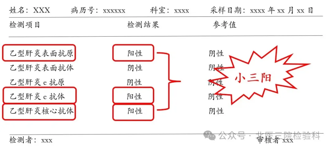 小三阳(HBsAg、HBeAb、HBcAb阳性):说明病毒数量少,复制能力弱,传染性相对较低,但还是要定期检查,以防病情恶化。