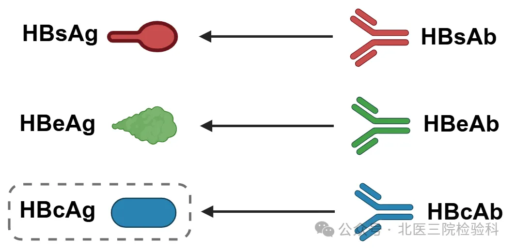 由于乙肝核心抗原(HBcAg)在血清中不易检测到,所以在临床工作中只能检测剩下的两对抗原抗体和一个单独的乙肝核心抗体,这就是我们俗称的两对半。
