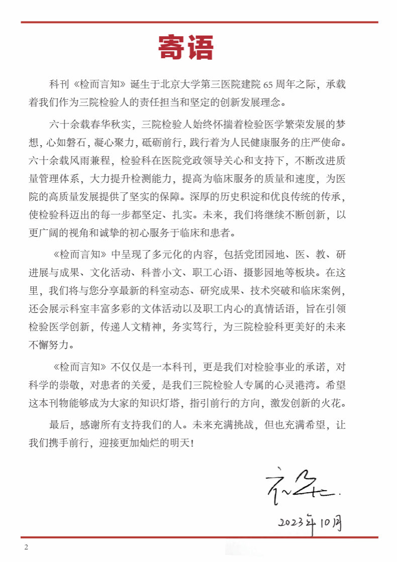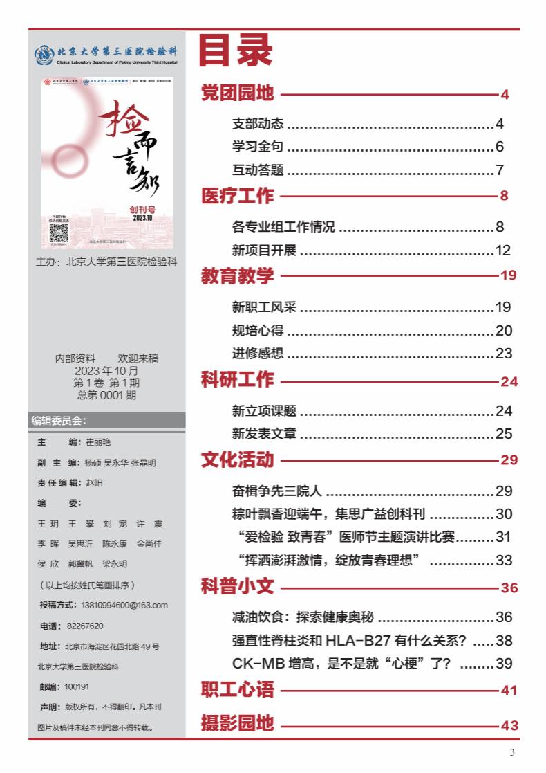 《检而言知》创刊号——北京大学第三医院检验科科刊