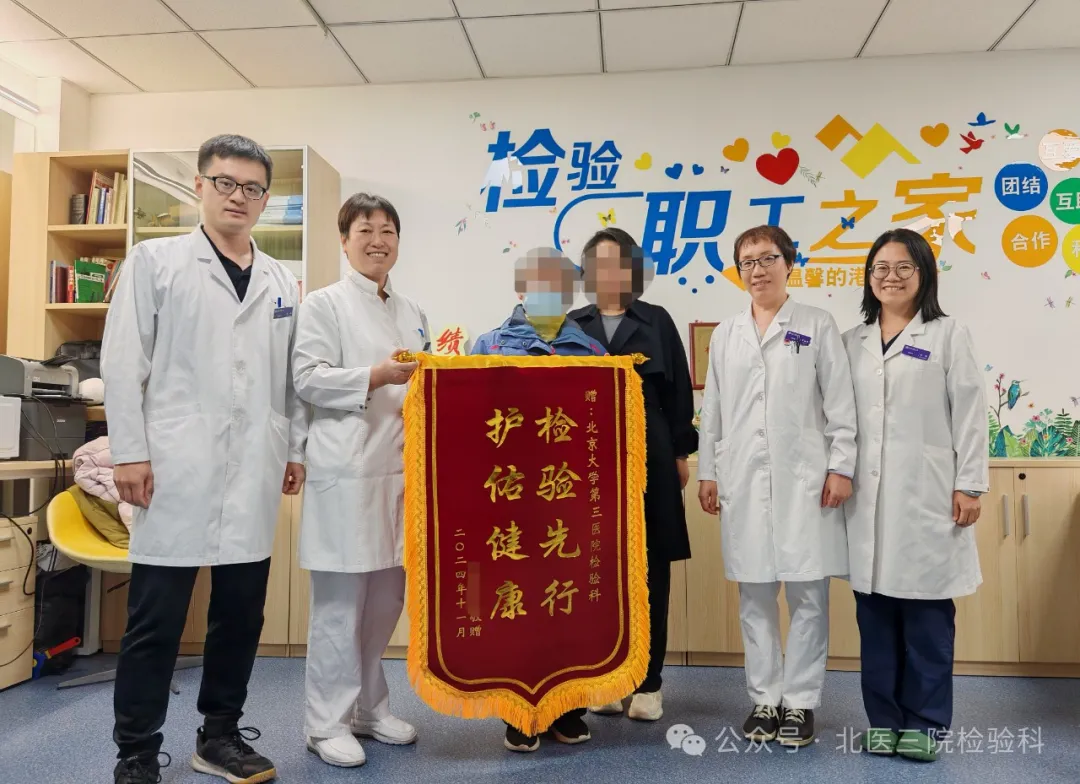 近日,北京大学第三医院检验科收到了一位老人送来的锦旗“检验先行,护佑健康”。一面锦旗,凝聚着浓浓的医患真情,它传递的不仅是老人的感激,更是对检验科医务人员倾情服务最好的肯定。