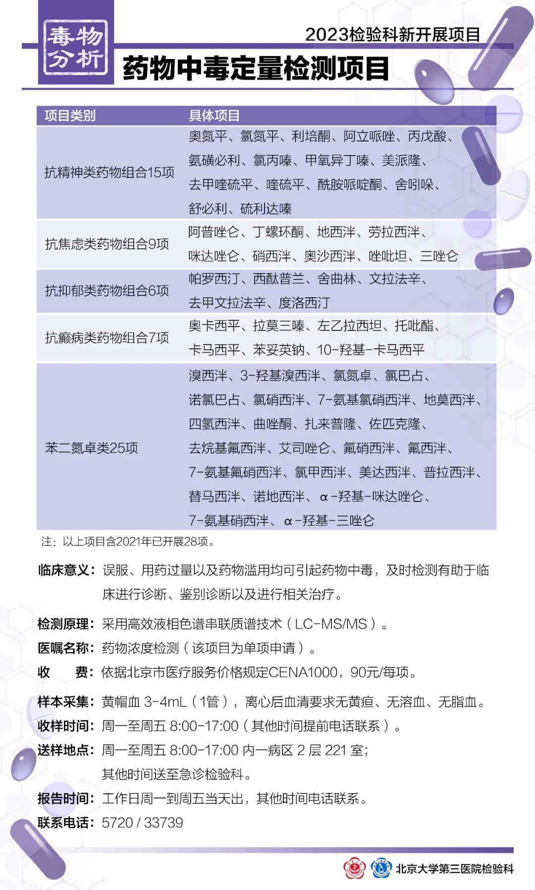 近期,检验科质谱实验室已开展新项目“药物中毒定量检测项目”,下图为详细介绍。