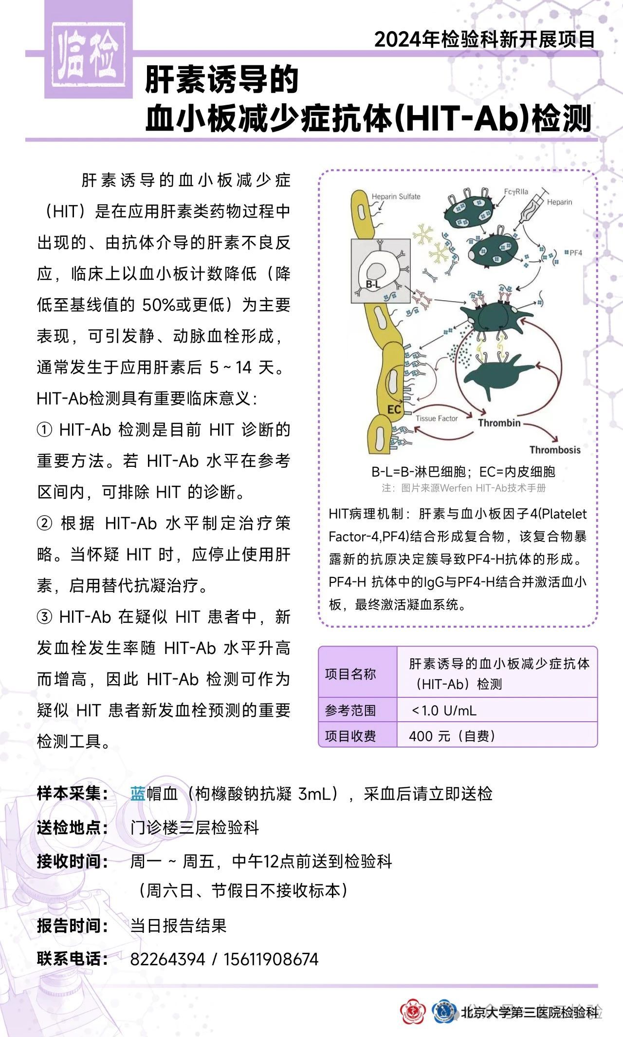 北医三院检验科已开展新项目“肝素诱导的血小板减少症抗体”,下图为详细介绍。
