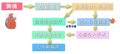 长期以来急诊科和心内科密切合作,共同建立急性心肌梗塞的绿色通道,所有来诊的胸痛病人都能在最短的时间内完善所有必要的检查包括心电图、心肌酶、超声心动图,并在明确诊断后先期给予基础药物治疗和所有术前准备,以最快的速度进入心导管室接受冠状动脉造影和介入治疗,2015年急诊冠脉造影介入治疗251例。