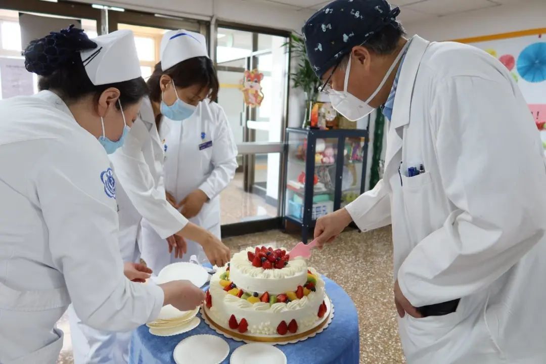杨书记表述了对护士们的节日祝福,感谢为人女、为人母、为人妻的护士姐妹们,日夜坚守在护理岗位上,保证了病房工作有条不紊地进行,祝大家幸福。