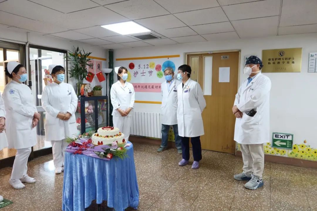 2022年5月12日上午,全体康复科成员在病房大厅进行第111个国际护士节庆祝活动,祝贺科室11名护士节日快乐。首先,由周主任进行致辞,周主任表述了对护士们辛勤工作的感谢,感谢护士们心细、温暖,护士是不可缺少的一份子,是护士们承担了大部分患者的心理护理工作,保证了病房日常工作的正常运转,感谢她们。