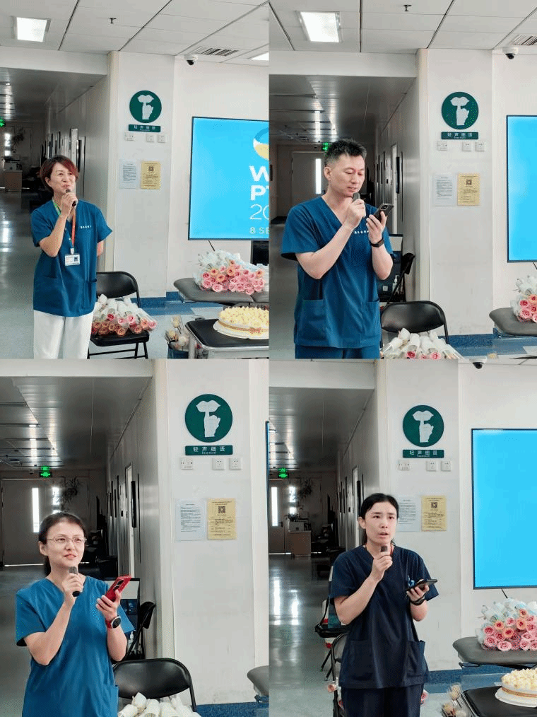 接下来,康复医学科戴宏乐护士长代表科室核心组向现场所有治疗师表示了祝福和鼓励,希望大家可以开心地工作、生活和学习。体检中心的葛杰老师、运动医学科的苗欣老师、心内科的宋燕新老师代表兄弟科室治疗师依次发言,各自表达了他们对世界物理治疗日的看法,同时一致认为物理治疗涉及方方面面,希望通过世界物理治疗日为物理治疗师发声,让更多的人了解、关注这个行业,让更多人受益。