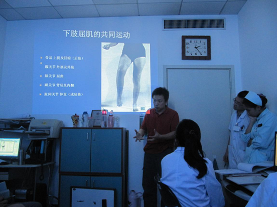 科室自2004年开始举办“全国骨科康复学习班”,授课内容每年更新,重点针对各部位骨关节伤病尤其是围手术期康复评定和治疗进行介绍,结合现代骨科康复一体化“Team Approach”模式,并邀请北医三院骨科和运动医学科教授讲解相关的现代骨科治疗。学习班采取理论与实际操作相结合的授课方式,组织学员参观北医三院康复科在骨科及康复科病房开展骨科康复一体化的工作模式,并为学员安排常见伤病的围手术期康复评定治疗见习学。