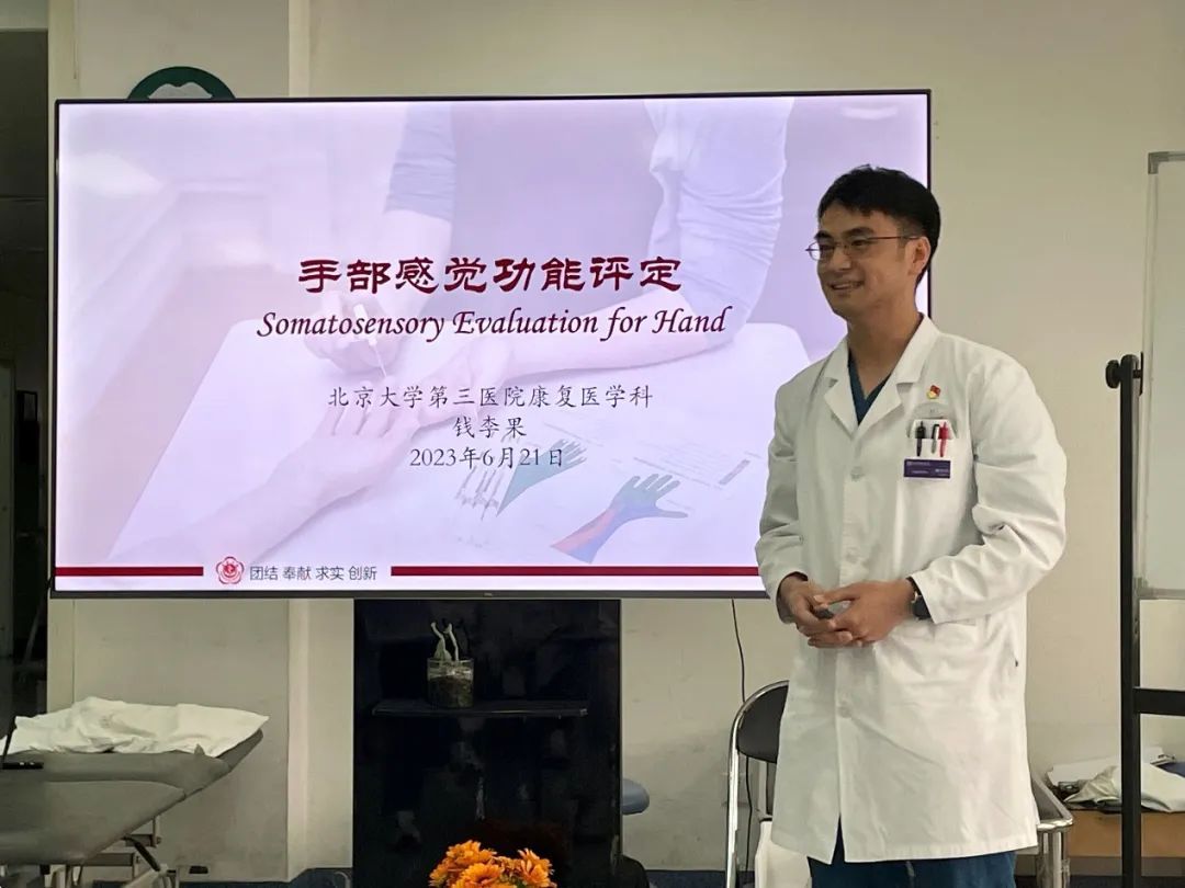 为帮助选手们参加北京大学第三医院青年教师基本功大赛做好充分准备,康复医学科于6月21日在门诊大厅举办了科内试讲活动。此次活动很荣幸邀请到了运动医学科的刘玉雷老师,连同科室核心组老师以及五位学生担任本次比赛的评委。