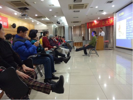 除了生活习惯的调整及药物治疗方面,李大夫还在科室实习生的协助下详细解说了骨质疏松患者该如何进行康复训练。讲座结束后有15分钟自由提问时间,许多听众都结合自身情况提出了一些与本次讲座相关的问题,李涛大夫也对每一个听众的问题进行细致分析,浅显易懂地指导听众应该怎么去做。