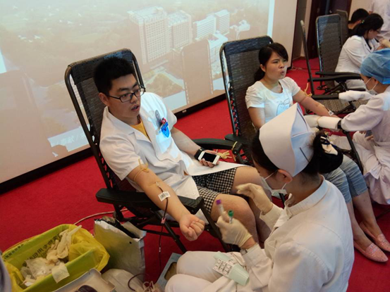8月29日上午,我院组织医务人员参加“用爱心为生命加油”无偿献血活动。全院共有110名医务人员体检,99名医务人员成功参加了献血,总献血量达20600毫升。我院医务人员再次以自己的实际行动彰显了救死扶伤、无私奉献的高贵品质。许多科室护士长、工会组长陪同为献血人员服务,一些科室领导也亲临献血现场关心员工,并为员工打气加油。献血现场,医院为献血者提供了早餐和慰问品,医院食堂还为献血者准备了红糖水。血液中心的献血车还悬挂了“感谢北医三院职工义务献血”的条幅,引来患者的啧啧称赞。