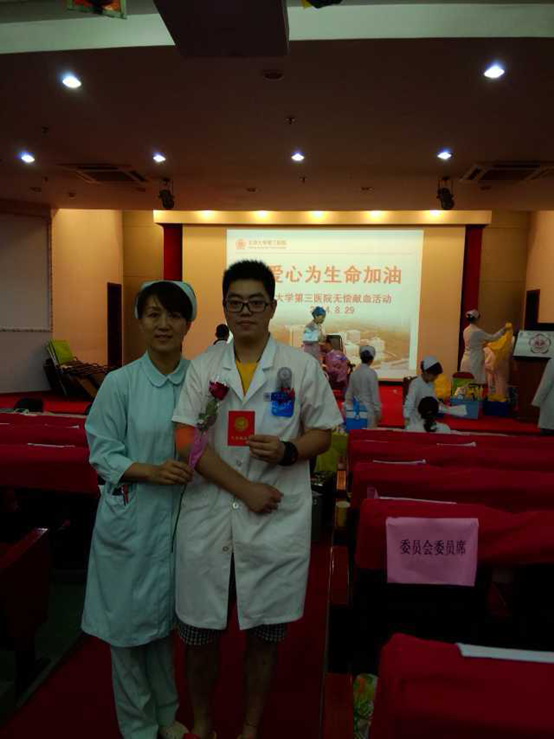 我科年轻员工李航,代表康复科全体人员,在戴宏乐护士长的陪同下,参加的此次爱心献血的活动。远在国外参加会议的主任也通过网络传达了赞许之情。
