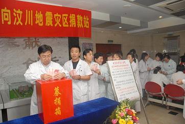 在接到北医三院为汶川捐款的通知后,我科人员积极募捐,在短短的一个小时里我科门诊和病房就筹集到捐款3310元。在举国默哀的5月19日科室又再次组织捐款1800元。我科很多人员还积极报名参加抗震救灾志愿者,同时也为伤员的进一步康复治疗做好了准备。让我们一起为灾区的同胞加油,祝愿他们早日重建家园。