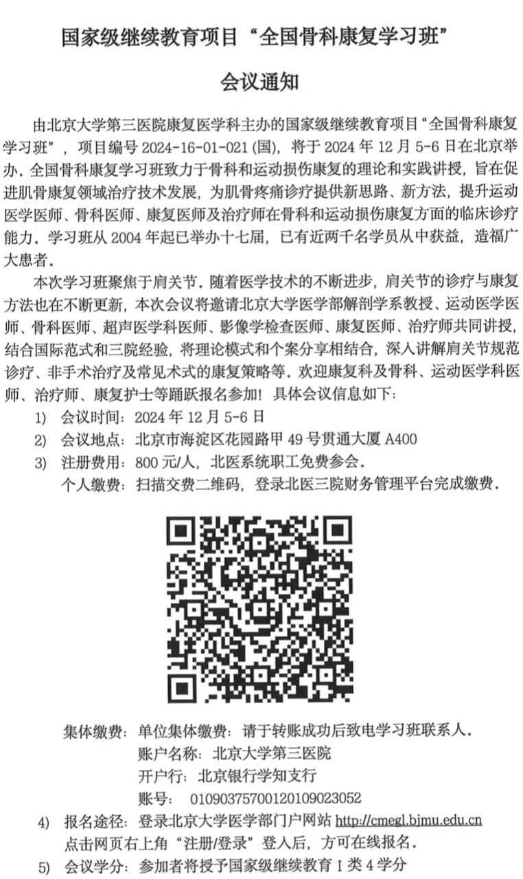 国家级继续教育项目『全国骨科康复学习班』第二轮会议通知