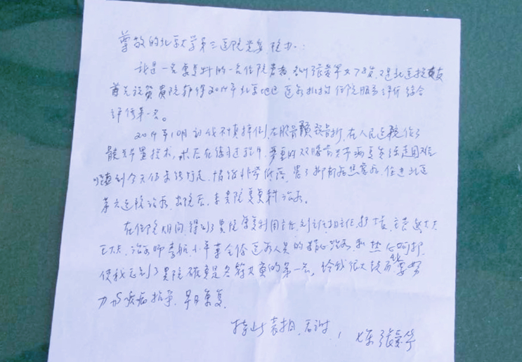 下图为患者赠与的感谢信。