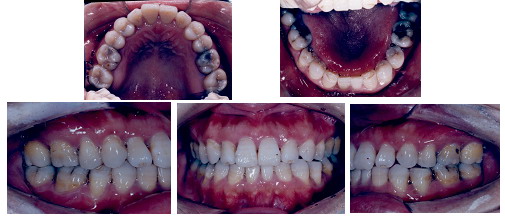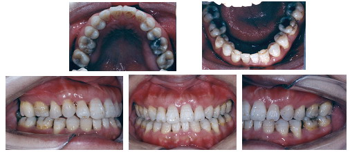 以下是一名38岁女性反合患者的病例,治疗前存在前牙反合、牙弓形态异常、牙弓左右不对称同时伴有颜面骨骼发育异常,面部比例失调,唇突度不协调以及全口不同程度的牙周炎症牙槽骨丧失、上颌尖牙早失,治疗难度很大。经过牙周和正畸的共同努力,在控制牙周炎症之后拔除两颗下切牙,采用目前国际上最流行的MBT矫治技术,经过15个月的治疗,达到了理想的治疗效果。