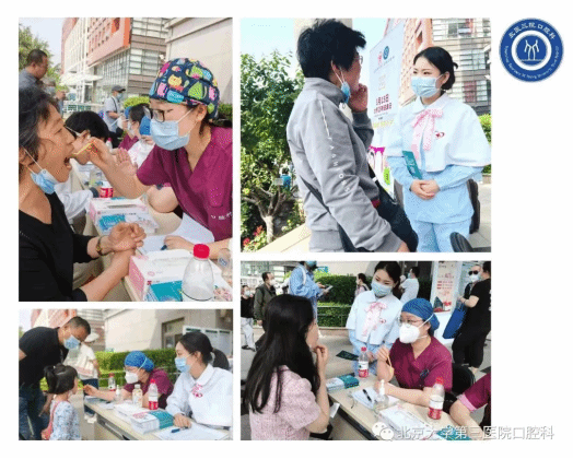 在口腔科党支部书记马宁副主任医师的带领下,口腔科正畸专业组陈晓红、薛梅副主任医师以及白艳杰、解莉、邹玏、刘欣、张媛媛,蒋亦然等正畸医生与口腔专业护士组建了一个义诊团队,为群众进行口腔检查,并免费进行正畸咨询,以及一对一的健康宣教。
