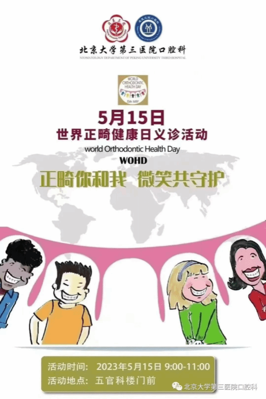为迎接第七个世界正畸健康日,作为北京口腔医学会口腔正畸专委会常务委员单位积极参与“5.30中华口腔医学会会员日暨全国科基工作者日”系列活动,北京大学第三医院口腔科正畸专家团队于5月15日在五官科楼前开展了“正畸你和我,微笑共守护”义诊活动,为广大市民进行现场口腔义诊与科普知识讲解,以提升广大群众的口腔正畸知识和健康意识。