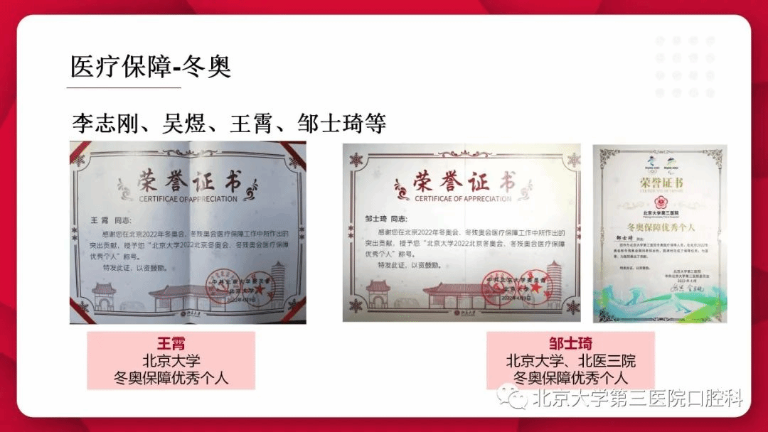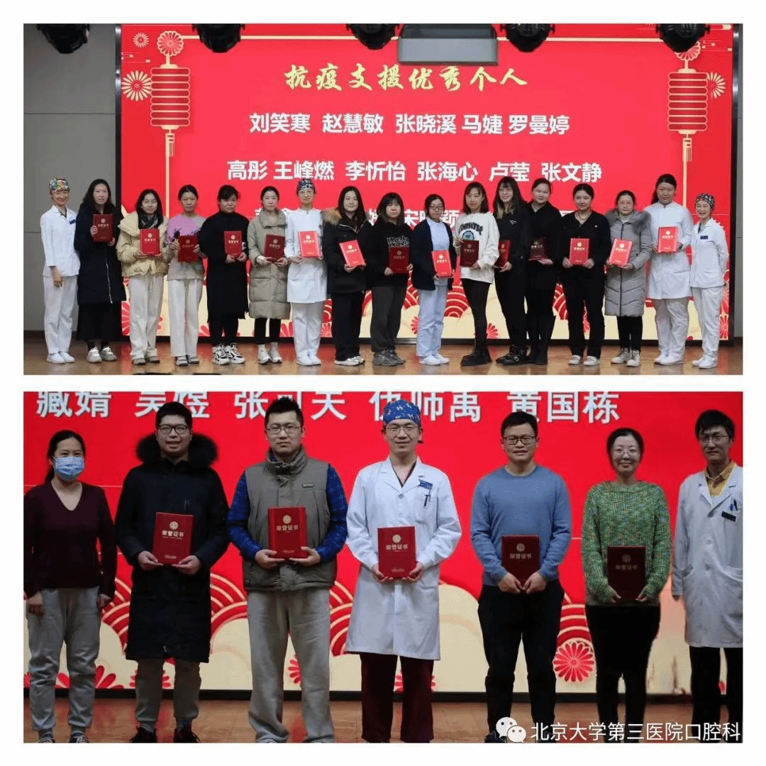 2022年是不平凡的一年,这一年我们直面疫情,有很多很多的不容易,带着一腔热忱的口腔科全体医务人员面对疫情从不曾懈怠与胆怯,承担起了作为一名公立医院医务工作者的社会责任,时刻冲在前线。不论是在北京市委组织的方舱支援、核酸支援及疫苗支援中,还是在冬奥医疗保障以及在北医三院院内支援中,我们口腔科人总是奋勇争先,不怕困难艰苦,勇于一线。