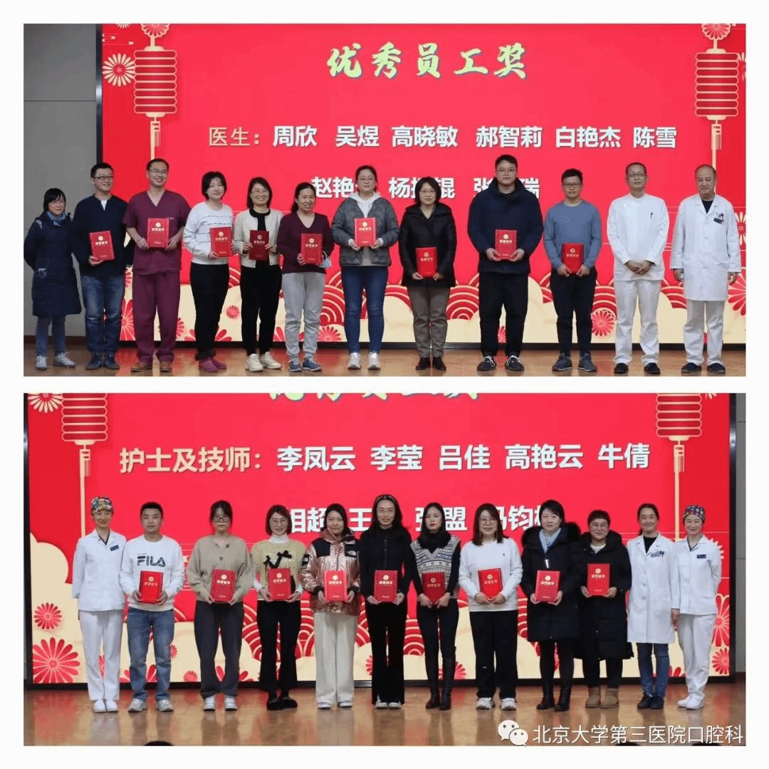 最后,在口腔科党支部书记马宁的主持下进行了口腔科表彰大会,口腔科周琼、李志刚、李博翰、吴煜、刘政文、崔静、韩冲荣获医德医风先进个人称号。臧婧、吴煜、张可夫、仇师禹、黄国栋、刘笑寒、赵慧敏、张哓溪、马婕、罗曼婷、高彤、王峰燃、李忻怡、张海心、卢莹、张文静荣获抗疫支援优秀个人称号。周欣、吴煜、高晓敏、郝智莉、白艳杰、陈雪、赵艳芳、杨振坤、张鸿瑞、李凤云、李莹、吕佳、高艳云、牛倩、相超、王男、张盟、冯钧椋荣获优秀员工称号。