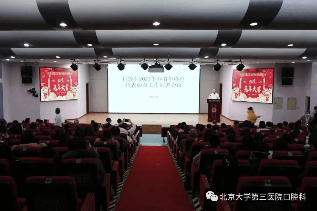2023年1月31日晚,北京大学第三医院口腔科在科学报告厅隆重召开2022年总结表彰及2023年工作部署会议,口腔科王霄主任对2022年工作进行了总结并讲述了口腔科2023年的重点工作。