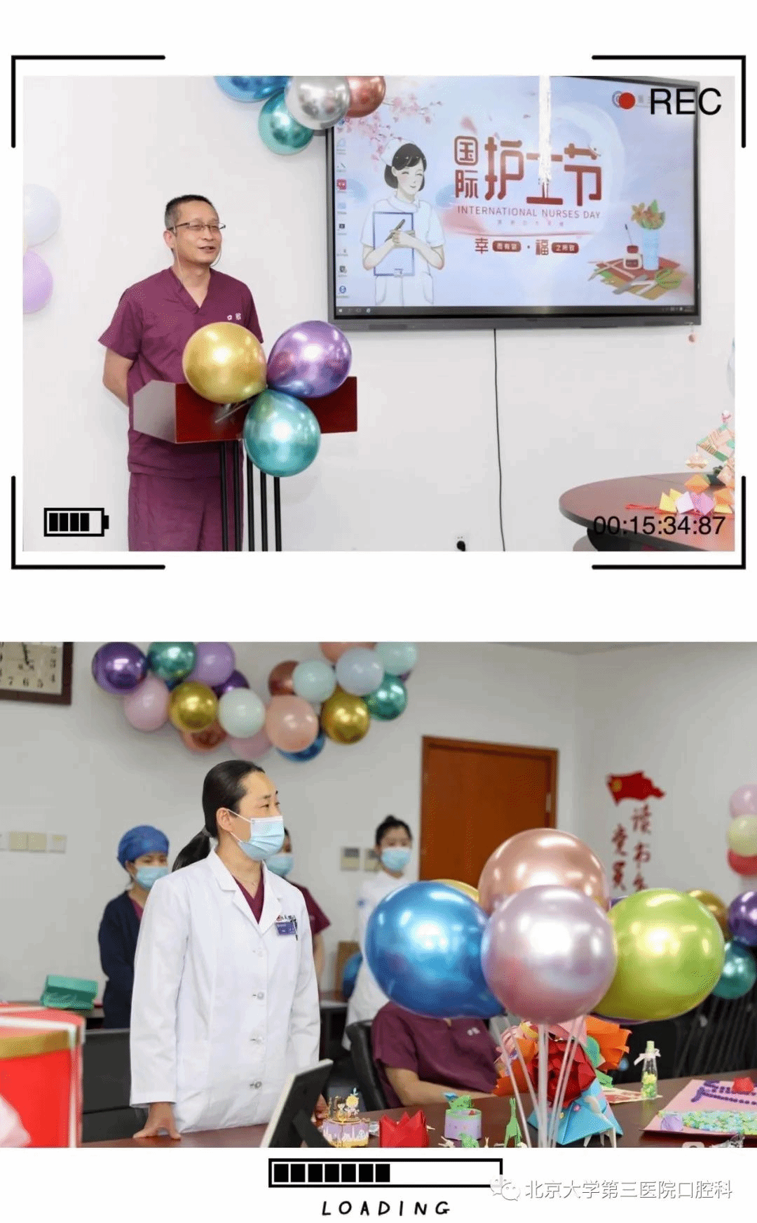 口腔科科主任王霄及口腔科党支部书记马宁发表了讲话,王霄主任与马宁书记表示,护理团队是临床工作中不可或缺的重要部分,感谢护理团队一直以来为科室做出的贡献,祝各位护士节日快乐。