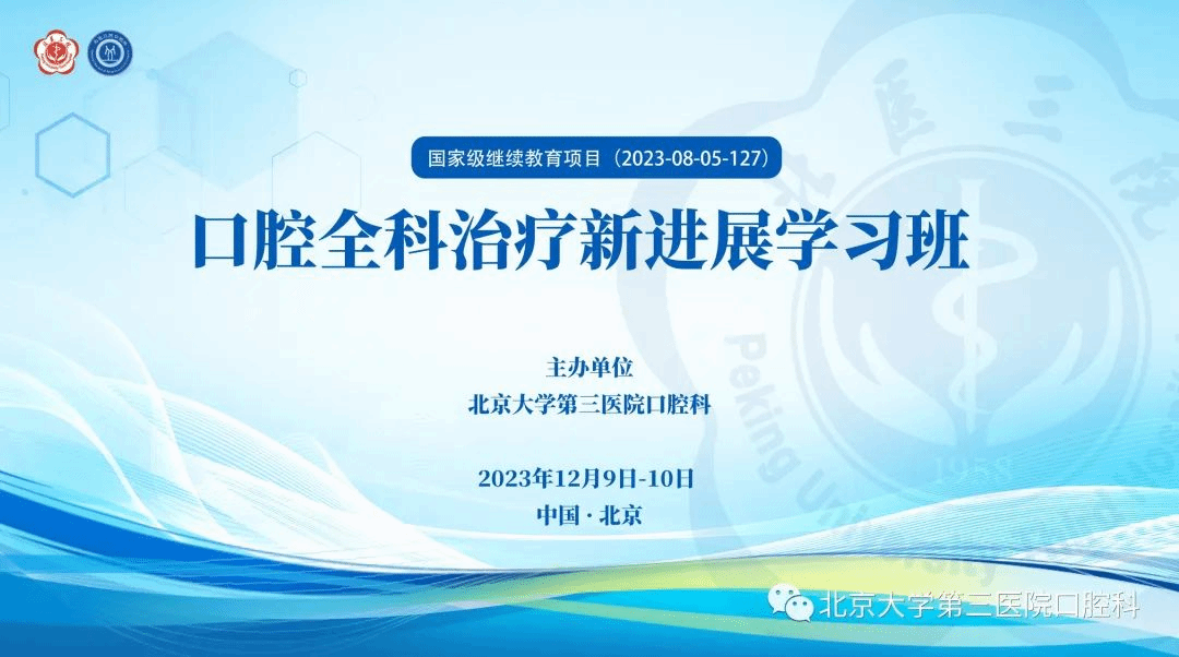 2023年12月9-10日,北京大学第三医院口腔科举办了国家级继续教育项目——“口腔全科治疗新进展”学习班,并获圆满成功。