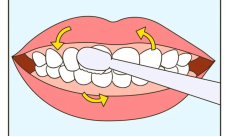 图5. 圆弧刷牙法 图6. 3岁以下儿童牙膏用量
