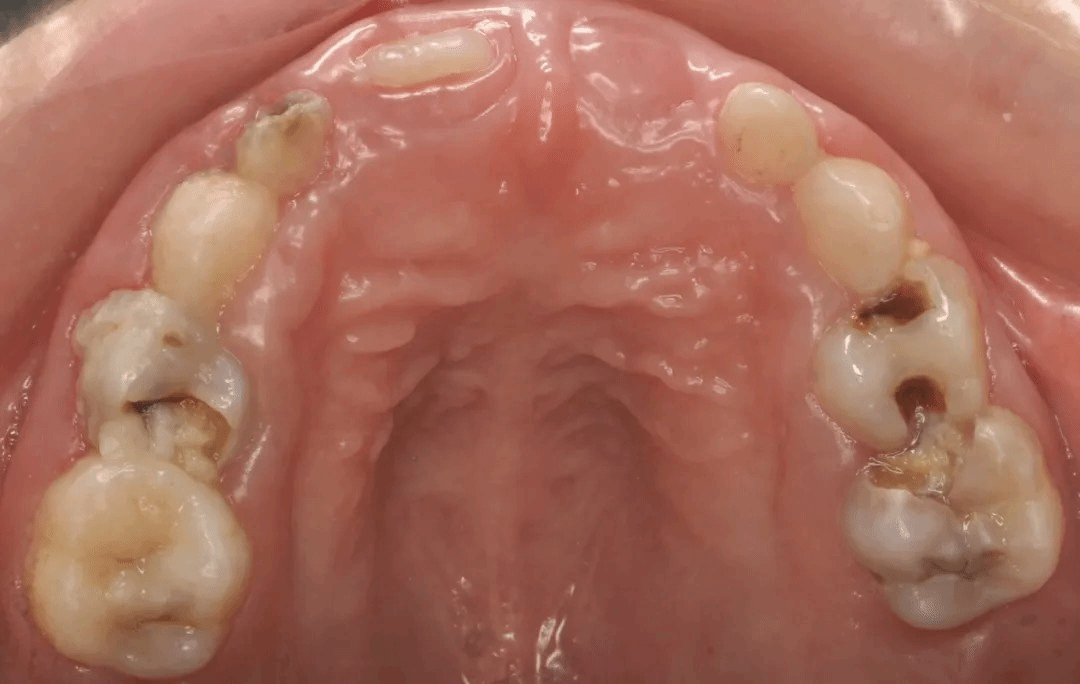 图中可⻅⼝内多⽛蛀⽛,影响进⻝。