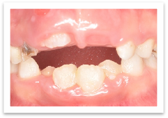 箭头所示上前牙牙龈较韧致牙齿萌出障碍