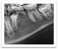 在后牙区比较常见的情况是乳牙早失后邻近的牙齿向前移位,占据了相应恒牙萌出的空间,导致牙齿萌出间隙不足而被卡在了骨头了出不来。为了避免这种情况,在乳牙早失后要及时做间隙保持器,维持住这宝贵的空间。